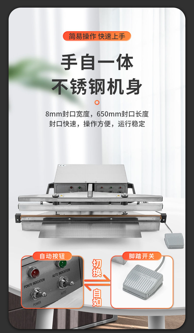 650半自动脚踏式封口机不锈钢款