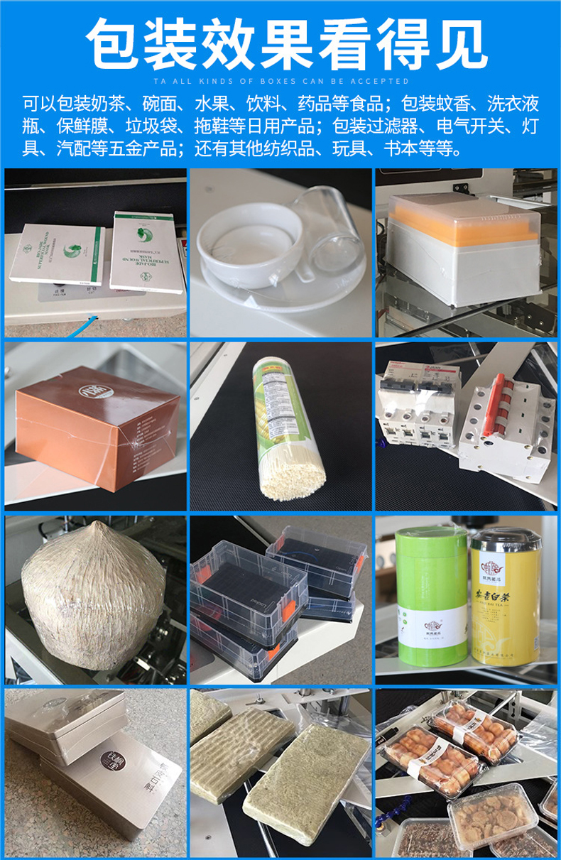 高速热收缩膜包装机化妆品套盒POF塑封机全自动枕式热收缩包装机