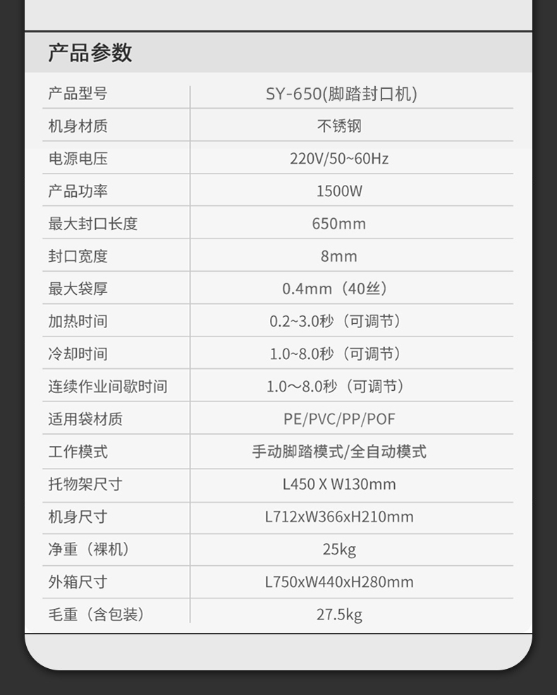 • 650脚踏封口机