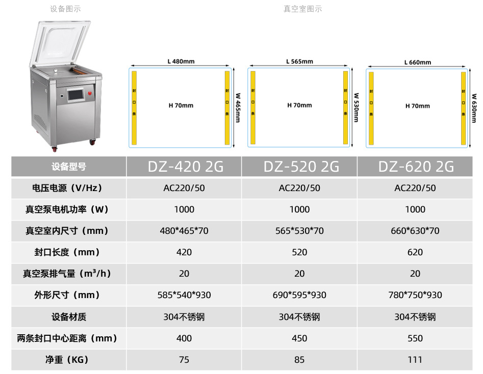 苏银520单室真空包装机配触摸屏食品商用真空打包机高端抽真空封口机